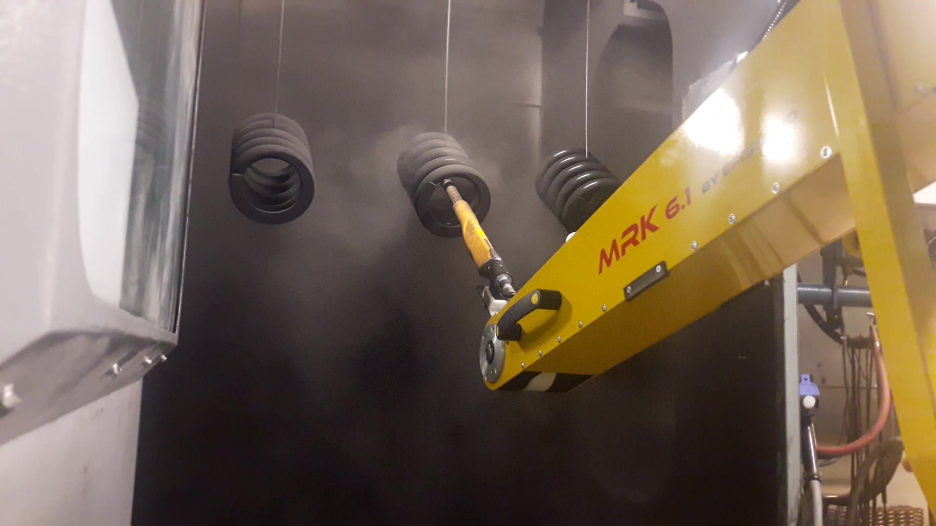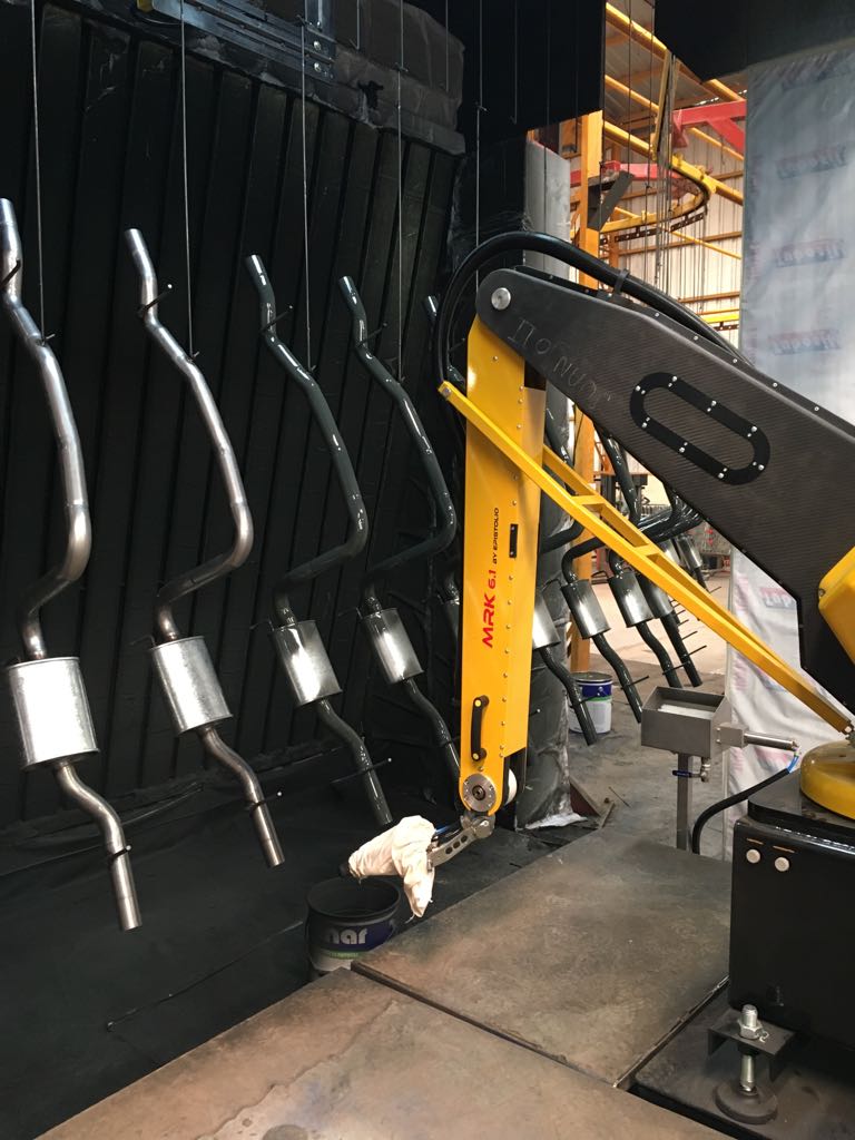 赛摩艾普机器人可完成对喷涂机器人的设计并对相关产品提供定制化解决方案,:如汽车轮毂、排气管、铝塑、五金等可以悬吊方式的喷涂的相关产品。 根据客户生产要求,我们的喷涂机器人可以和悬吊线(正反向传输均可)配合进行喷涂工作,也可利用用户现场已有的传输装置进行适应性改造。