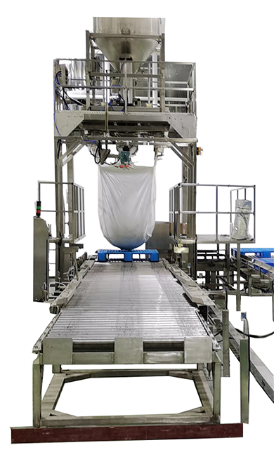 工作原理:吨袋包装机是用于吨袋包装物料的大型称重包装设备 ,它是集电子称重、自动脱袋、除尘于一体的多功能包装机。