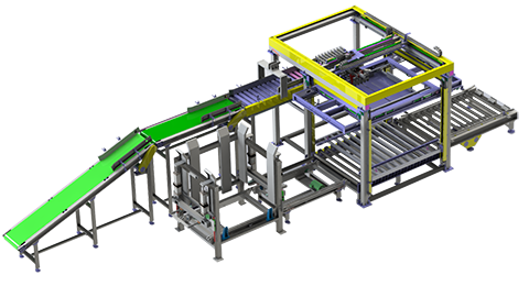 适用范围:挤码机是一种于坐标码垛机配合使用的设备,有利于将码垛的垛型紧凑,便于装车、集装箱装箱等,其包括:爬坡输送机、震动压包输送机、抓取输送机、坐标码垛机、挤跺机、托盘库、空盘输送机、重盘缓存输送机、控制系统组成。