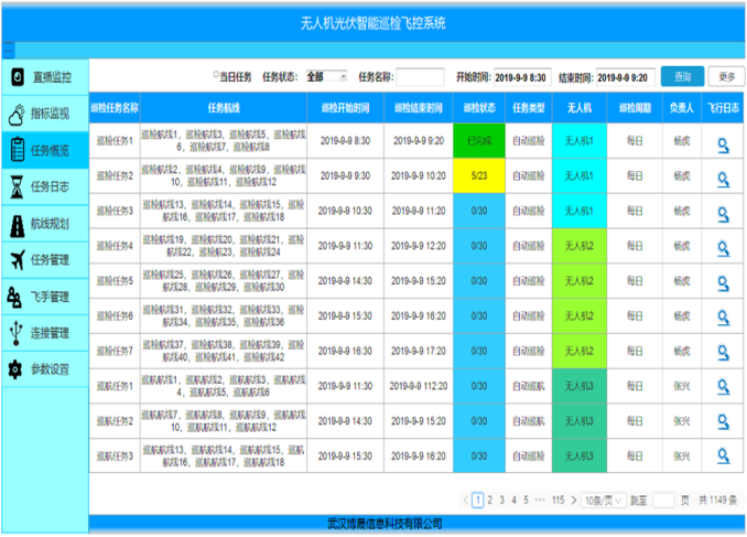缩进巡检任务可按照不同的筛选条件进行查询,比如定期巡检任务、临时任务,不同的巡检任务具有不同的航线,或不同的航线组合方式。新增巡检任务即设定航线的组合方式,生成一个新的巡检任务。任务管理模块可对不需要的巡检任务进行删除、修改。