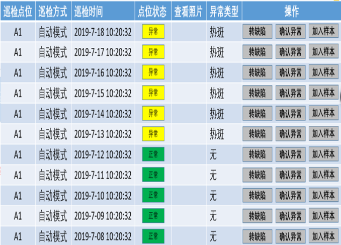 通过大数据调度工具对运行数据进行分析,自动对异常信息进行筛选和验证,也可人工校核异常信息,对异常设备问题进行长期跟踪。包括管理设备编号,设备异常发生时间,设备处理人员,异常处理结果长期跟踪。