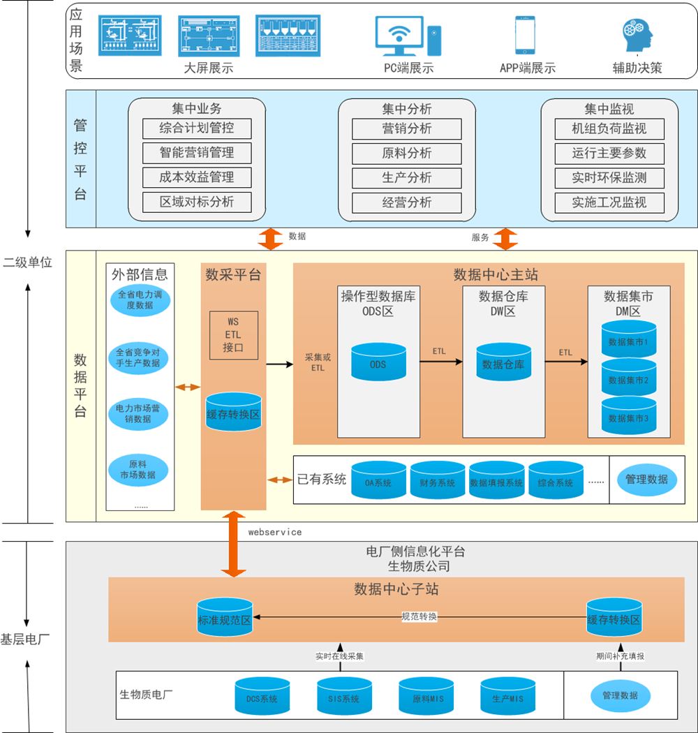 缩进通过对生物质发电企业运营及管理模式进行深入研究,针对生物质发电两级生产经营管理中面临的突出问题,以生产数据集中为基础,以经济运行为主线,以安全生产为重点,以数据与事实为驱动,建立生物质发电运营中心管控平台。可实现4项提升: