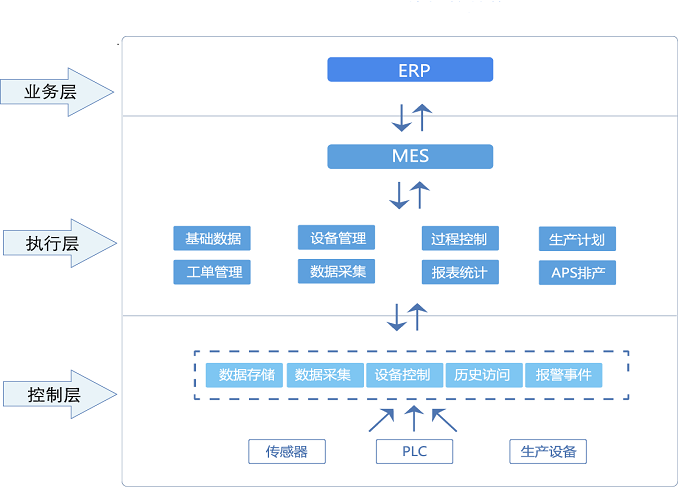 MES系统是赛摩电气在工业4.0的时代背景下研发的智能生产执行系统,系统处于制造生产企业信息化的核心领域,系统向上连接ERP系统进行计划协同,向下集成智能设备进行数据采集。系统包含生产订单、手工排产、生产序列、生产指示、生产跟踪、在制信息、ESOP、ANDON、质量管理等一系列生产跟踪执行业务。系统可以实现生产产量分析、生产质量分析、SPC统计分析、OEE设备利用率分析等统计分析功能,方便企业领导进行生产决策。