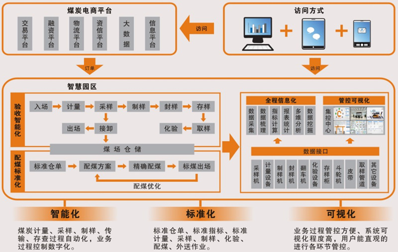 缩进煤炭物流园的年营销规模往往达到千万吨以上,对建设煤炭交易和煤炭供应链服务、优化煤炭产业资源配置、推动煤炭市场体系建设与发展有着重要意义。煤炭质量检测数据的真实、可靠、可信是对煤炭交易平台交易业务公平公正、科学指导数字化配煤、园区及园区煤炭品牌良好信誉的有力支撑。煤炭计量、接卸的高效是园区煤炭运转的保证。