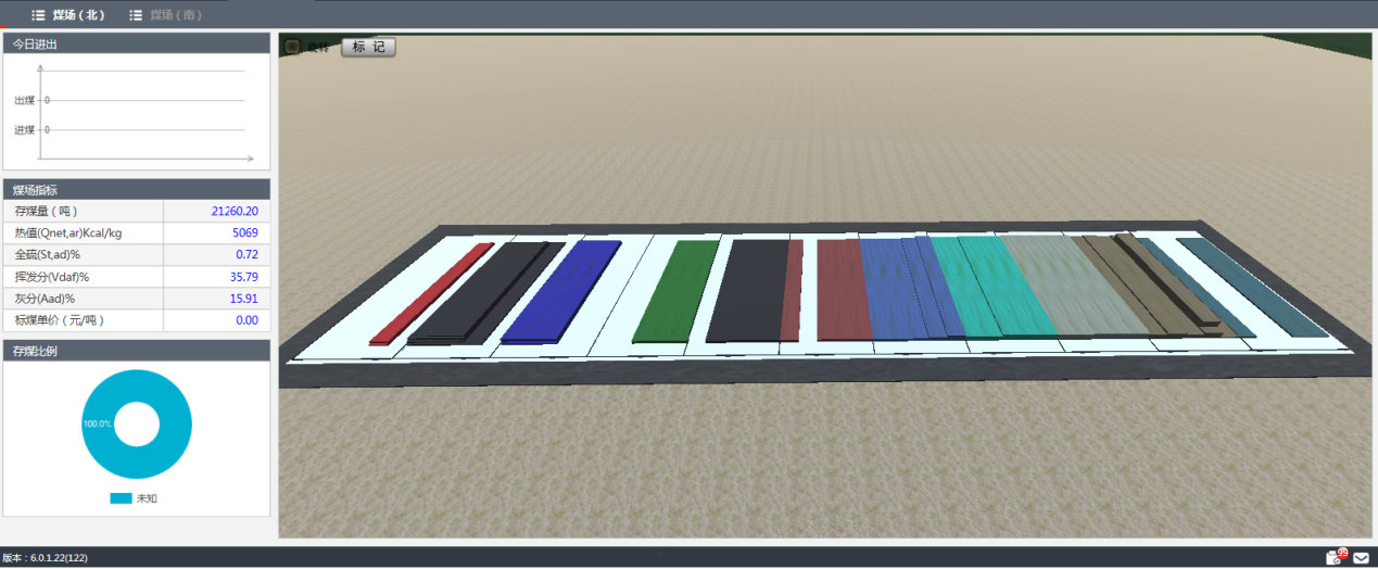 缩进数字化煤场管理以煤场信息实时掌握为目标,通过定位、数据叠加等技术从斗轮机定位装置、激光盘煤仪、皮带秤等设备直接或间接实时采集数据,以三维数字化煤场方式展示煤场进出煤状态,及时掌握煤场的动态存贮情况,为精确配煤提供准确及时的煤场信息。