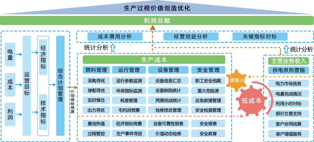 缩进经营管控与价值寻优产品线的推广能够促进发电企业业务精细化、流程程序化、管理专业化,实现燃料管理、生产运行、企业经营事前有指导、事中有管控、事后有分析,增强企业成本优势,提升企业核心竞争力。