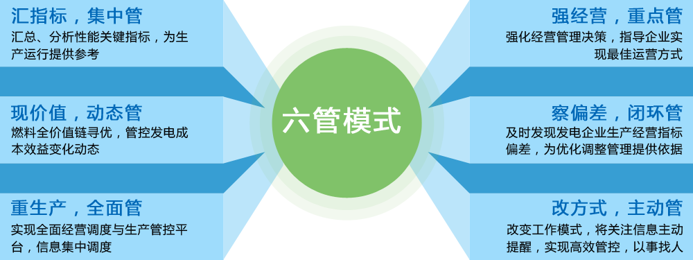 缩进通过发电企业经营管控与价值创造优化管理体系,实现“六管模式”,以数据在线实时监测为主要手段,以发电运营价值创造优化为主线,进行重点管控与管理优化,增强发电企业对市场的驾驭能力、夯实燃料基础管理、提高机组利用小时、优化运行能耗指标、降低生产成本费用,全面提升可持续价值创造能力。